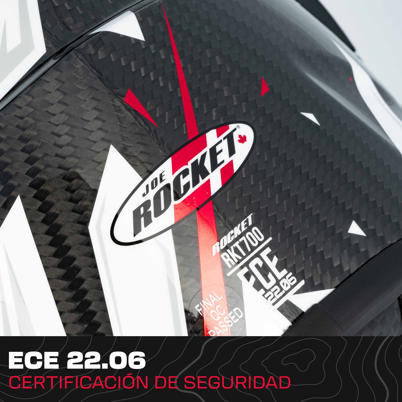 • El casco Joe Rocket® RKT 700 HARDCORE CANADIAN™ ofrece máxima protección con una calota de Compuesto Avanzado de Fibra de Carbono ACFC™, diseño aerodinámico y un peso ultra ligero de 1300 ± 50 g. Es una edición limitada con diseño especial inspirado en los Juegos Olímpicos de Invierno, pensada como pieza de colección para quien quiere rodar con algo que no se repite.